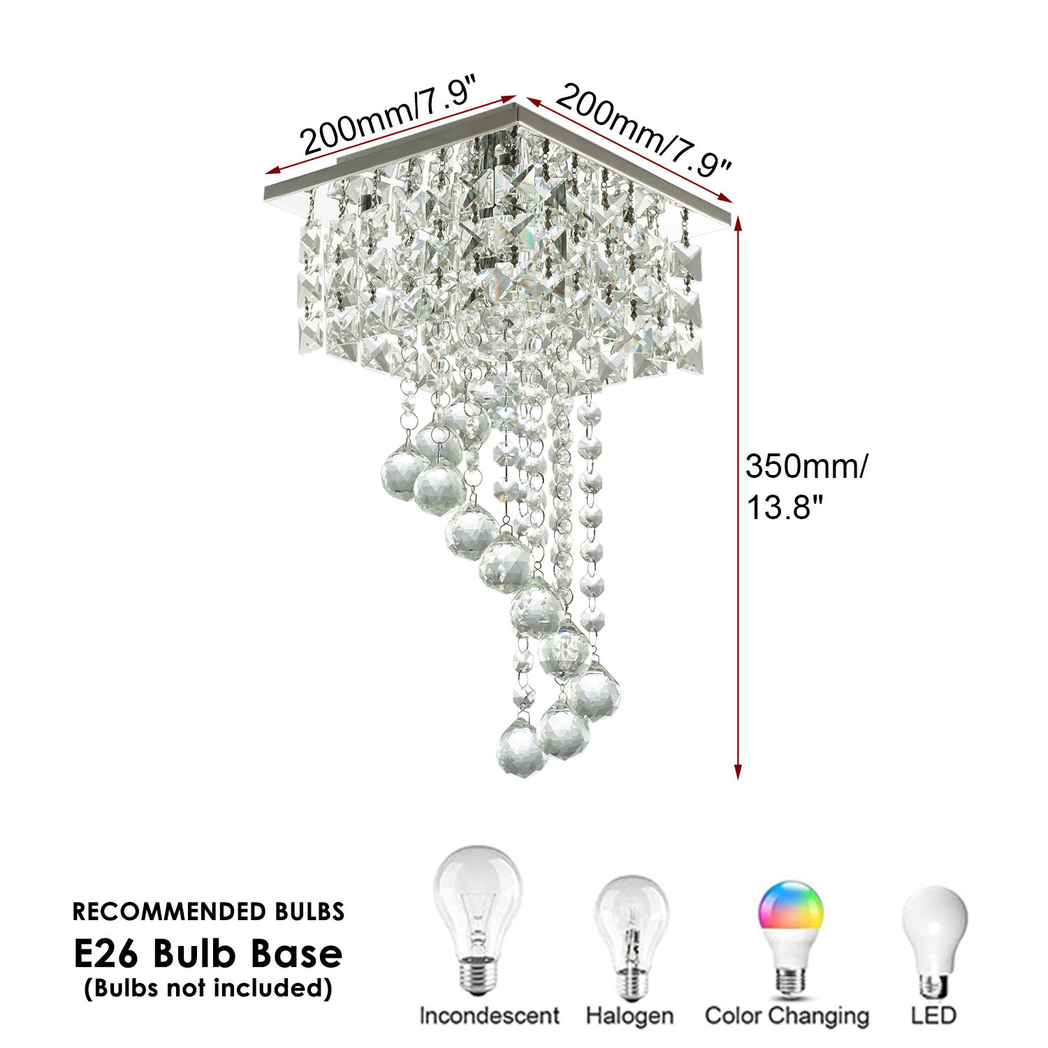 Chandelier Square Shape Crystal Ceiling Light