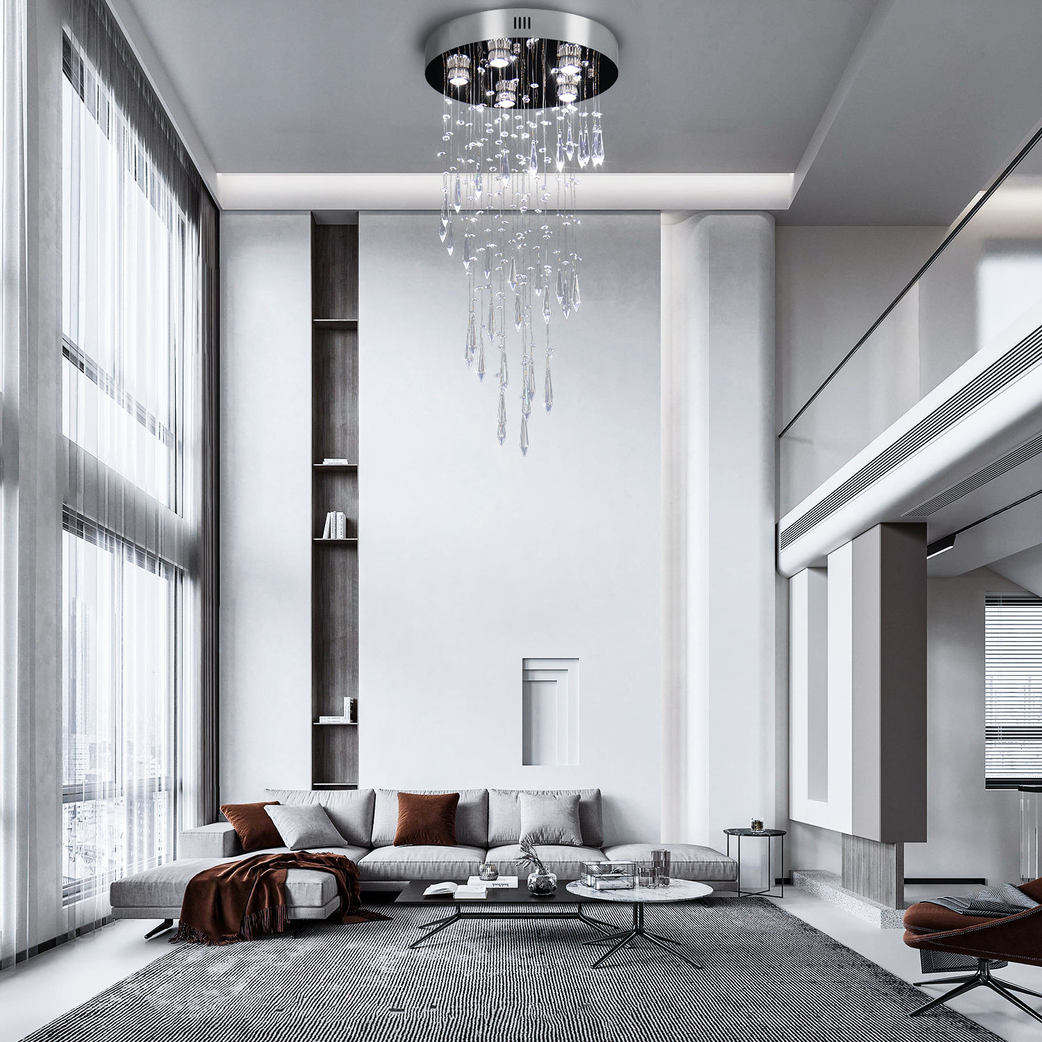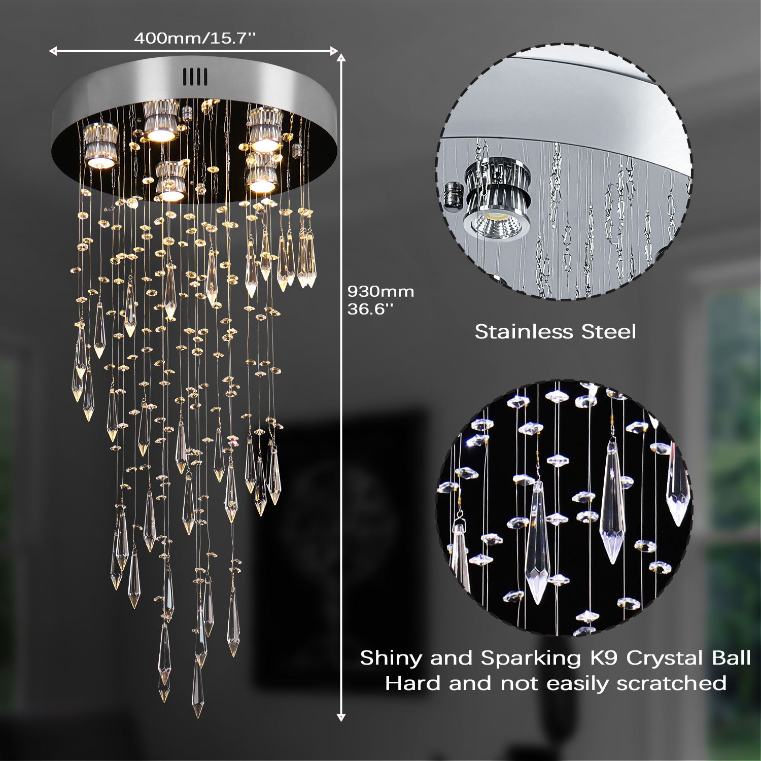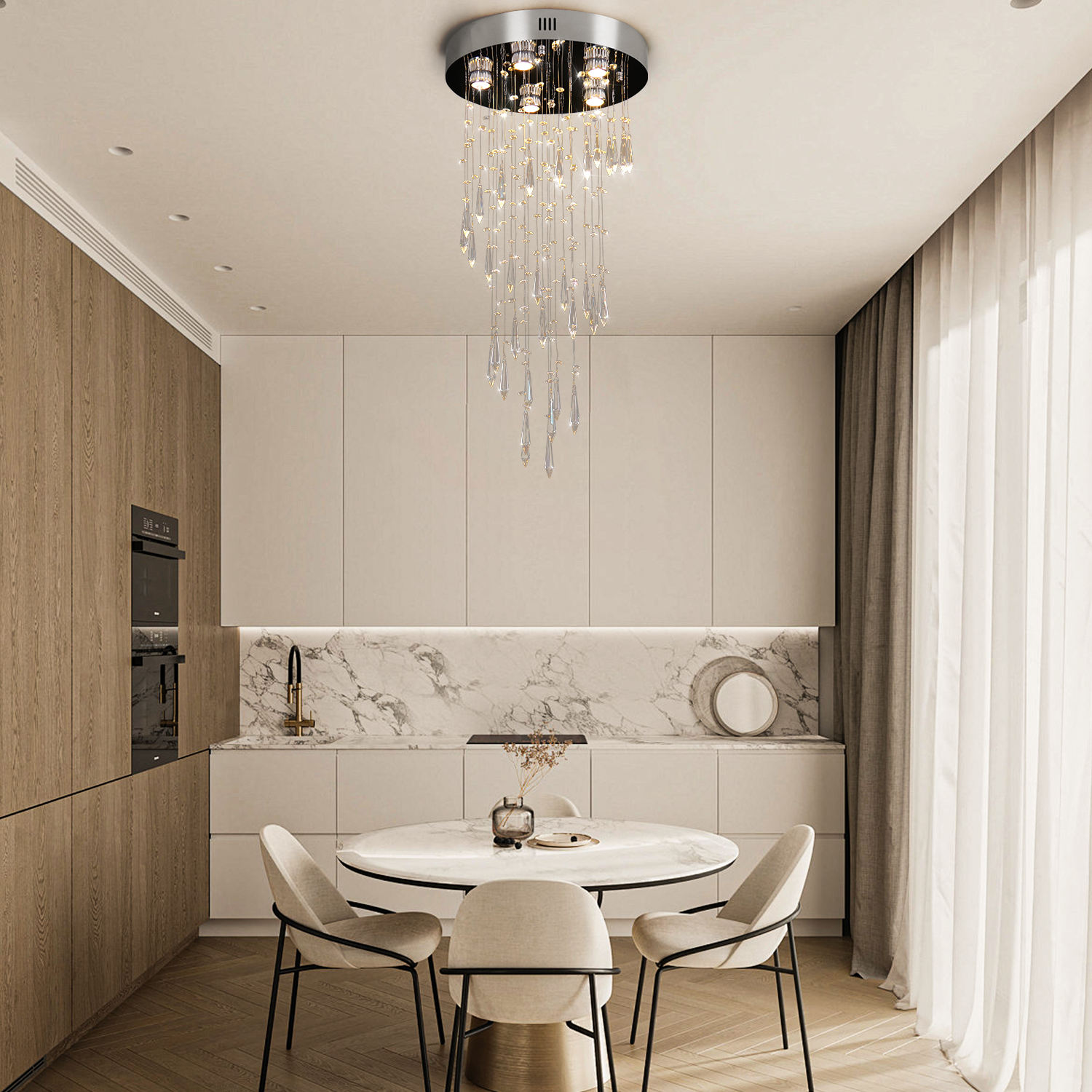 Elevate your space with the K9 Crystal Long Hanging Chandelier, featuring polished stainless steel and finely cut K9 crystals. Its... Read more