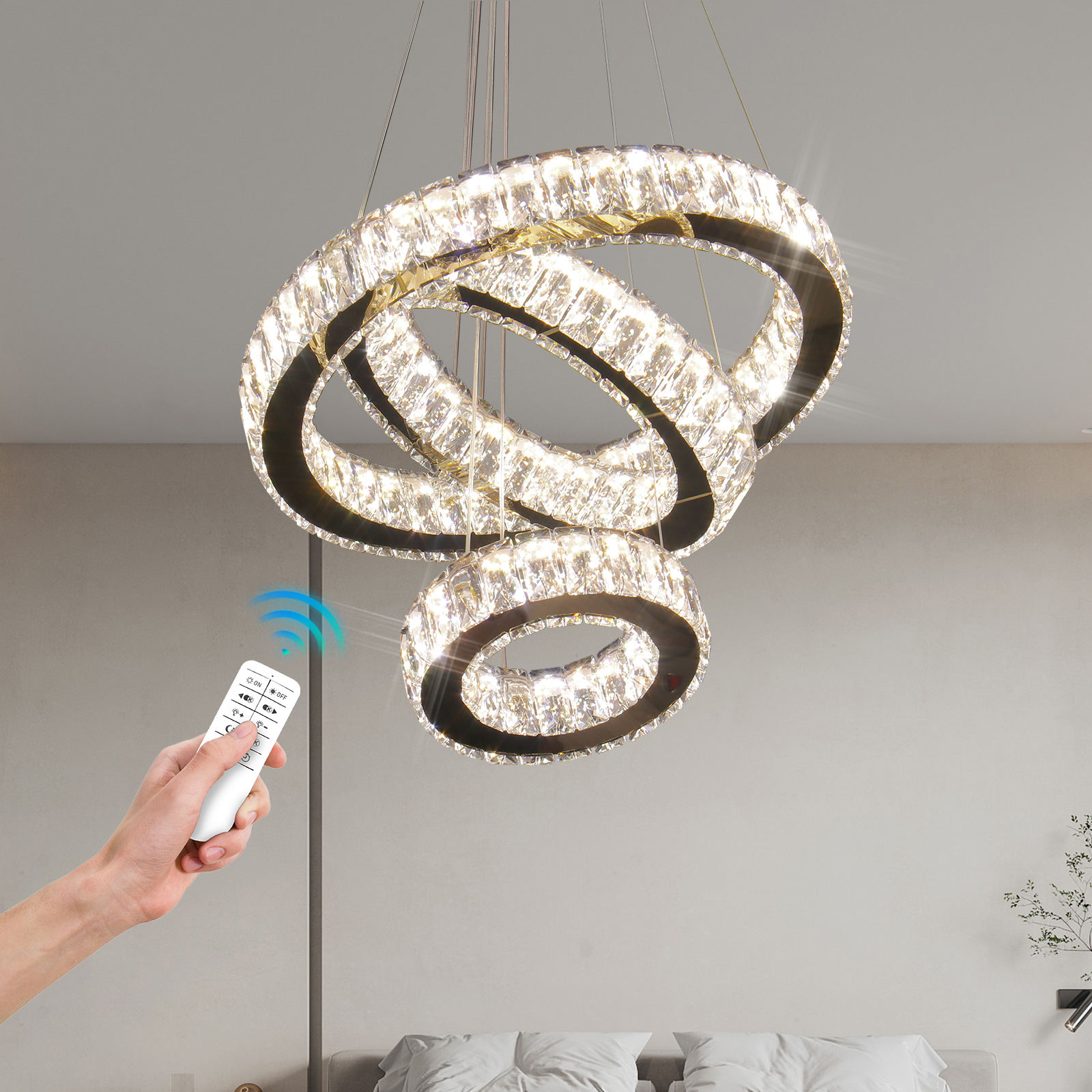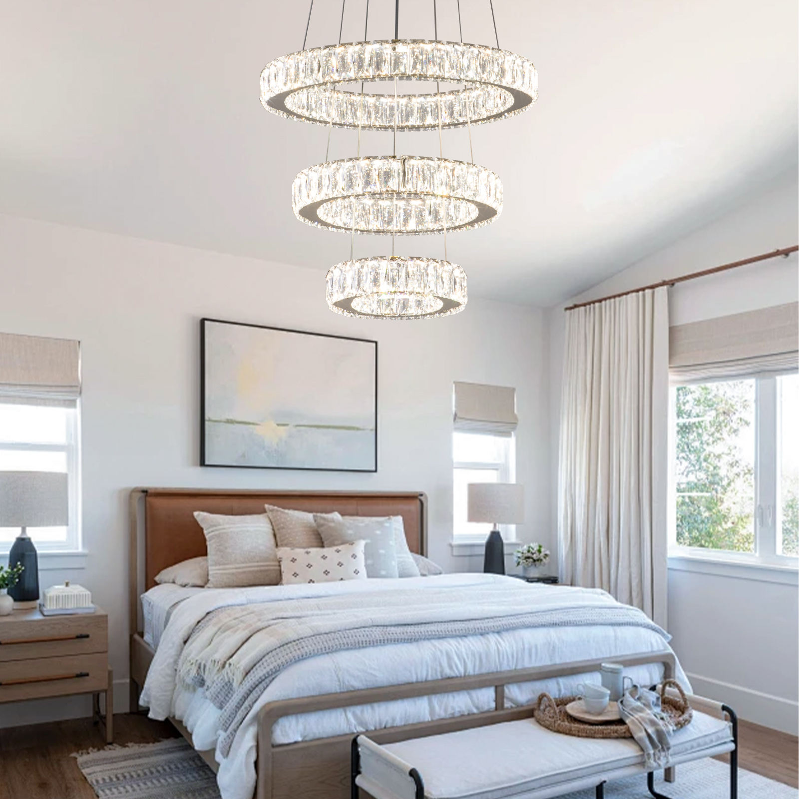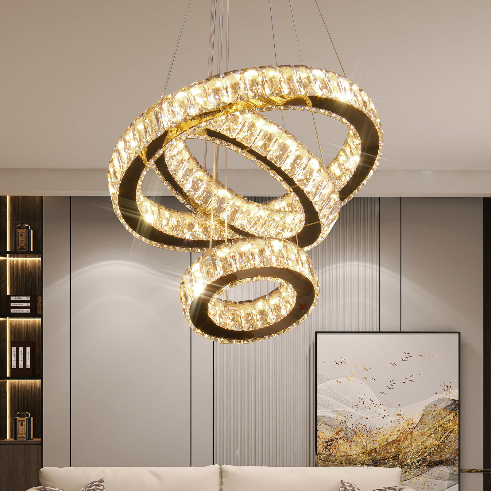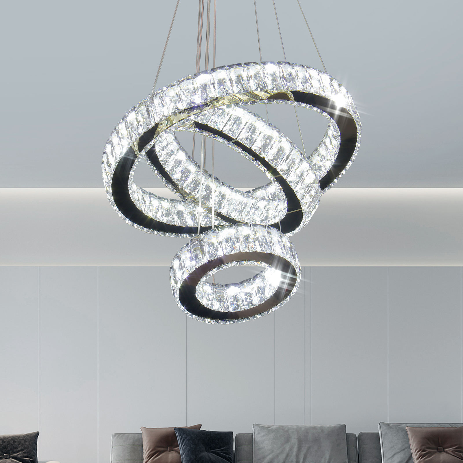 Modern 3-Ring K9 Crystal LED Chandelier