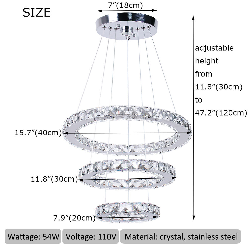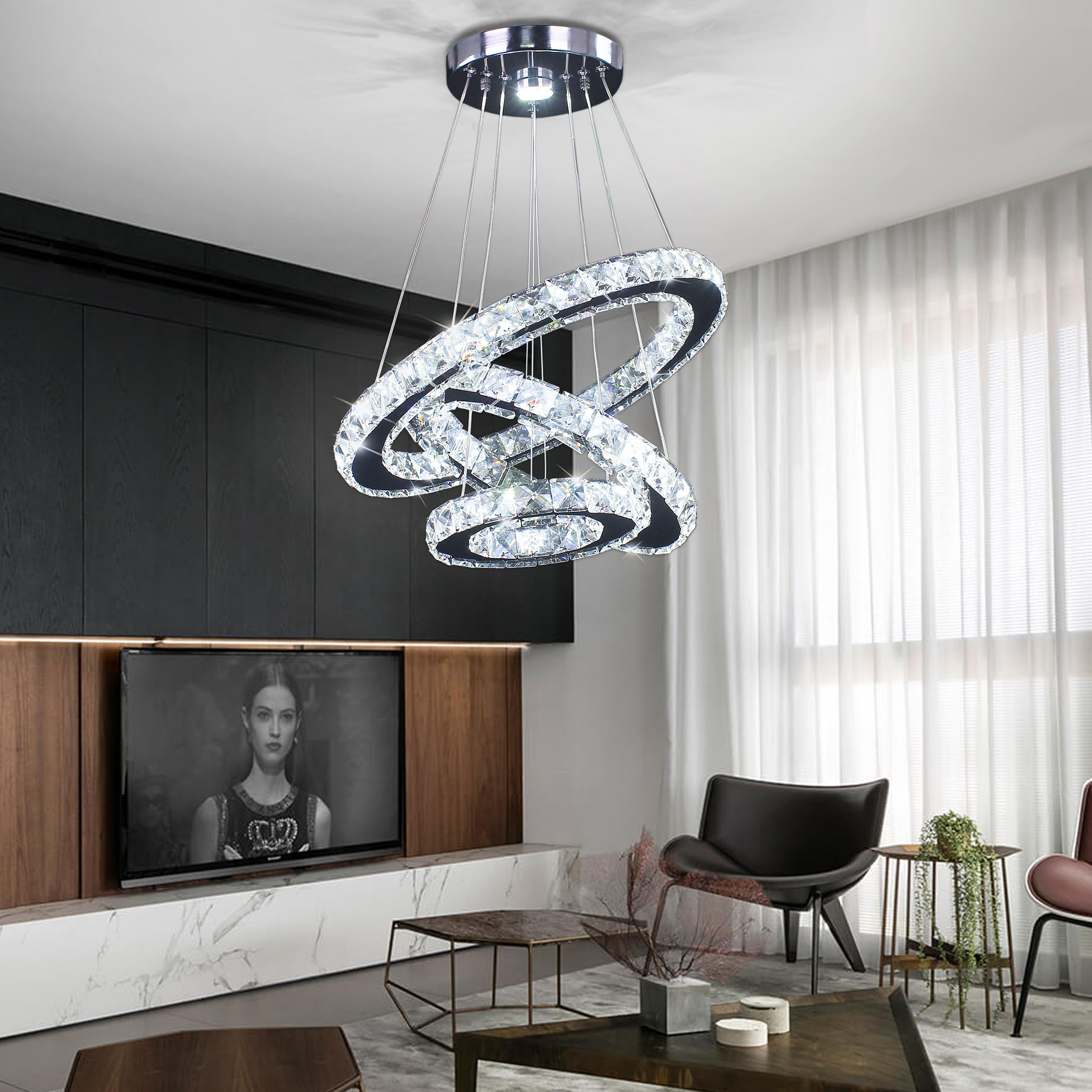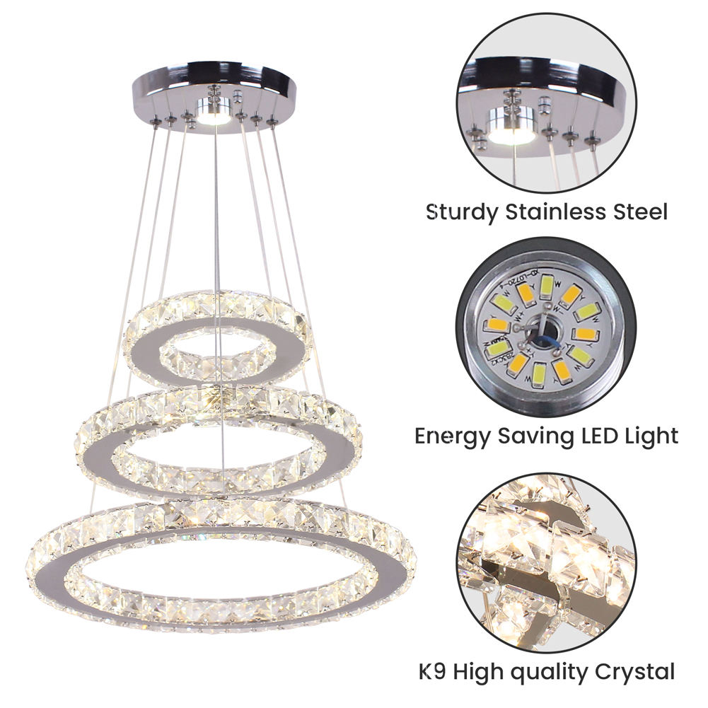 Modern 3-Ring Round K9 Crystal Pendant Chandelier