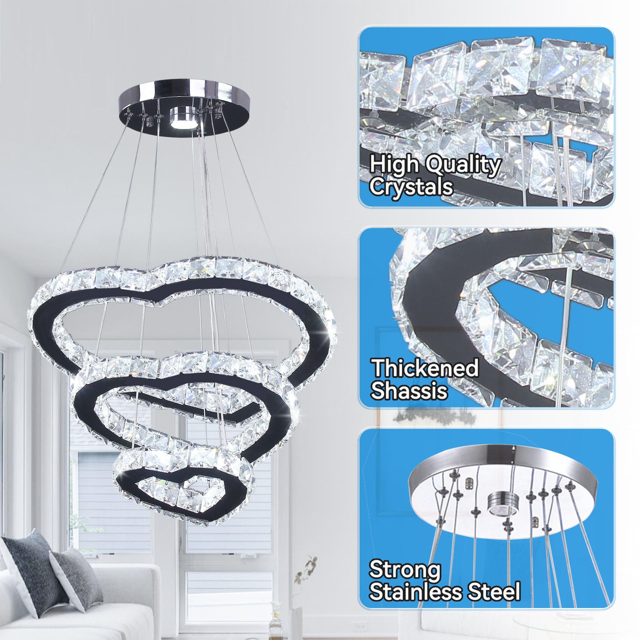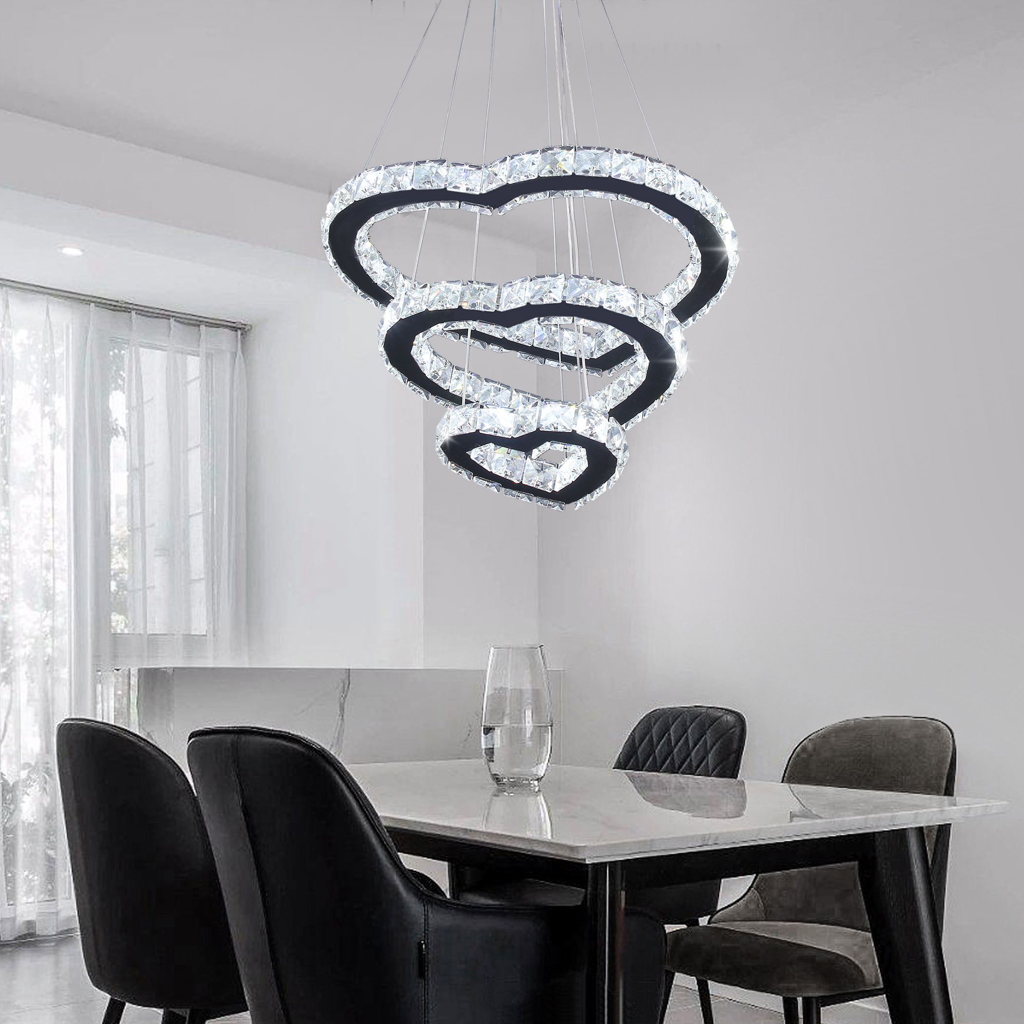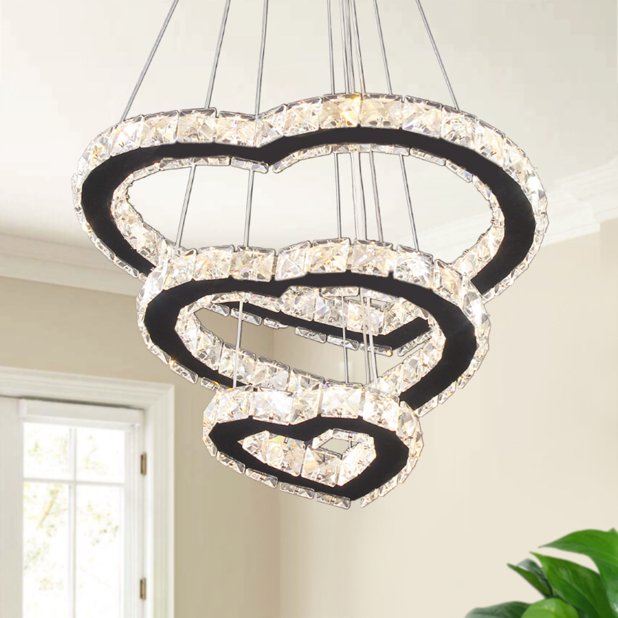 Modern Luxury 3 Hearts Rings Crystal Chandelier