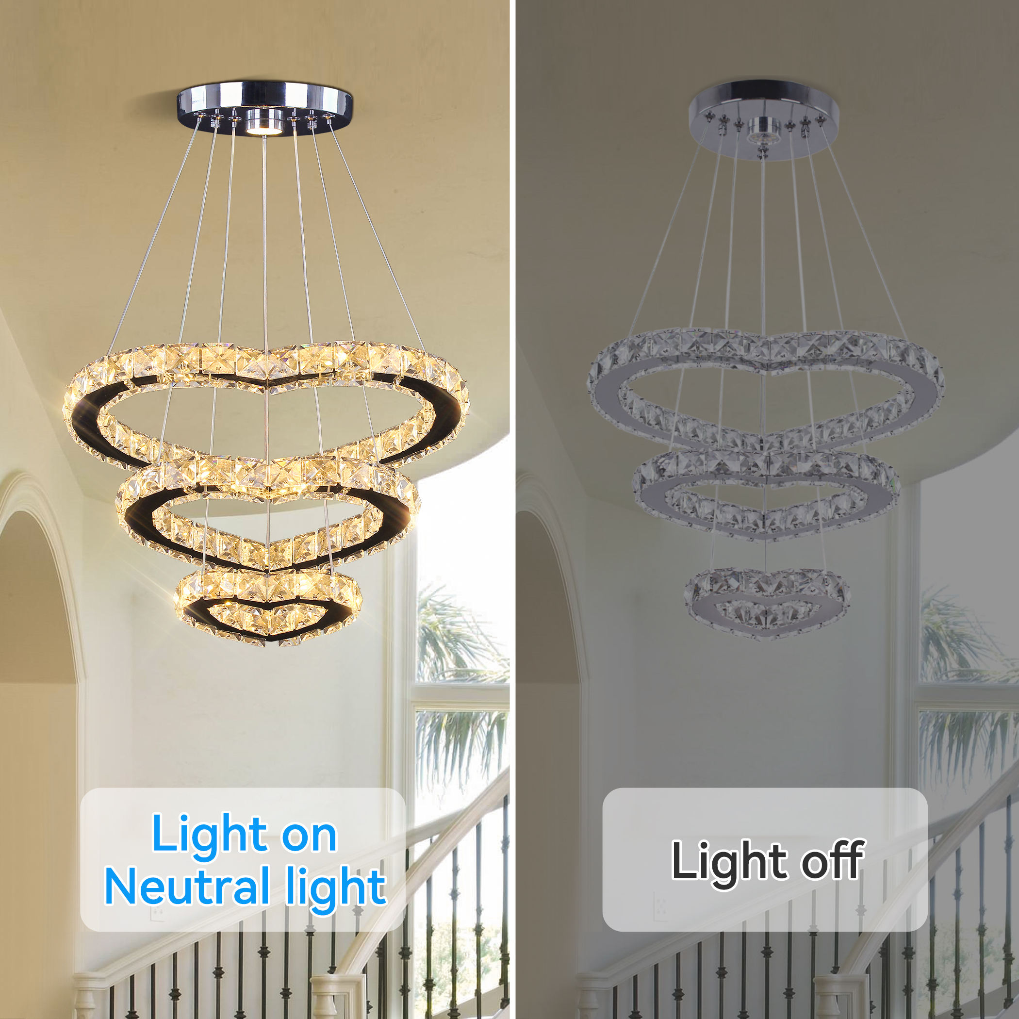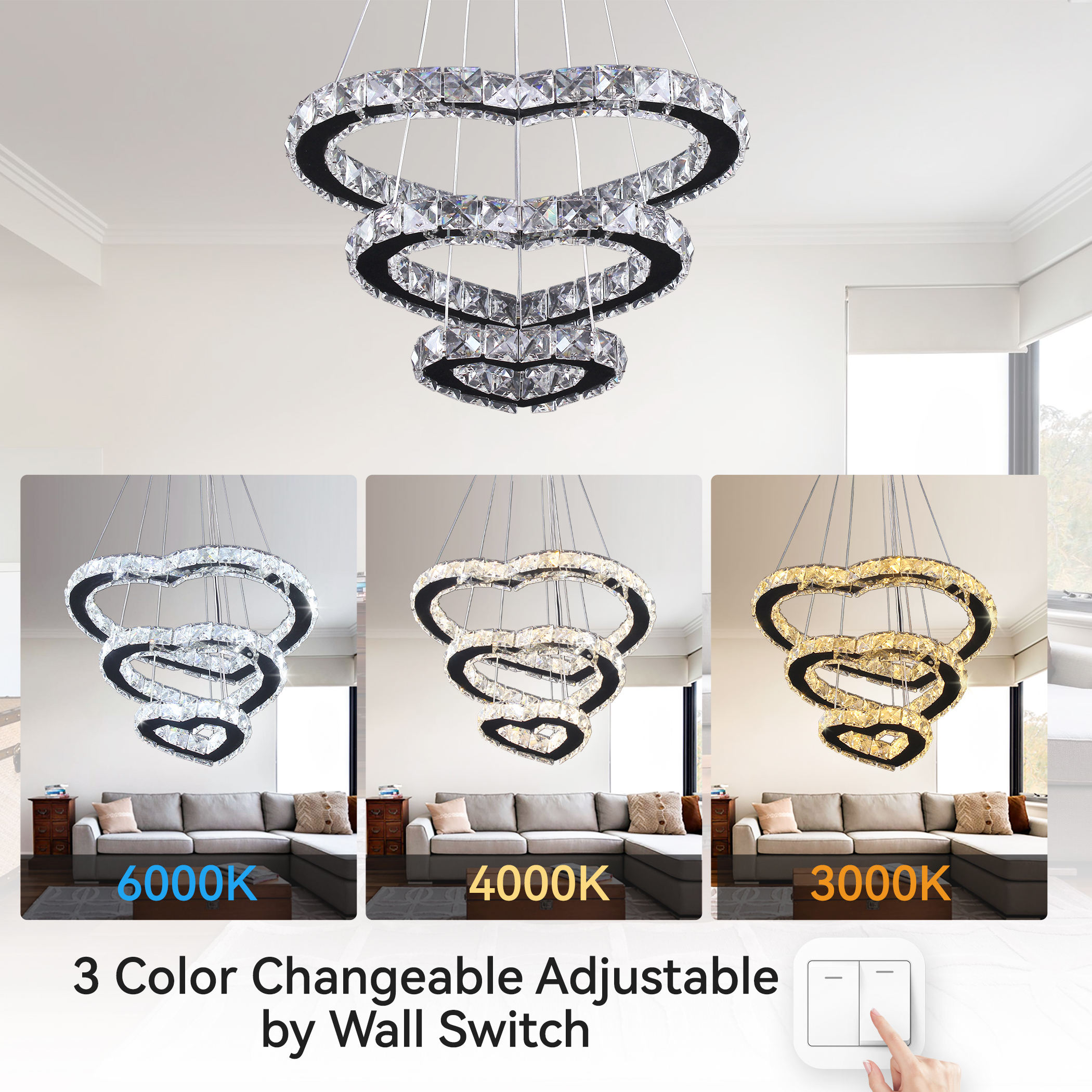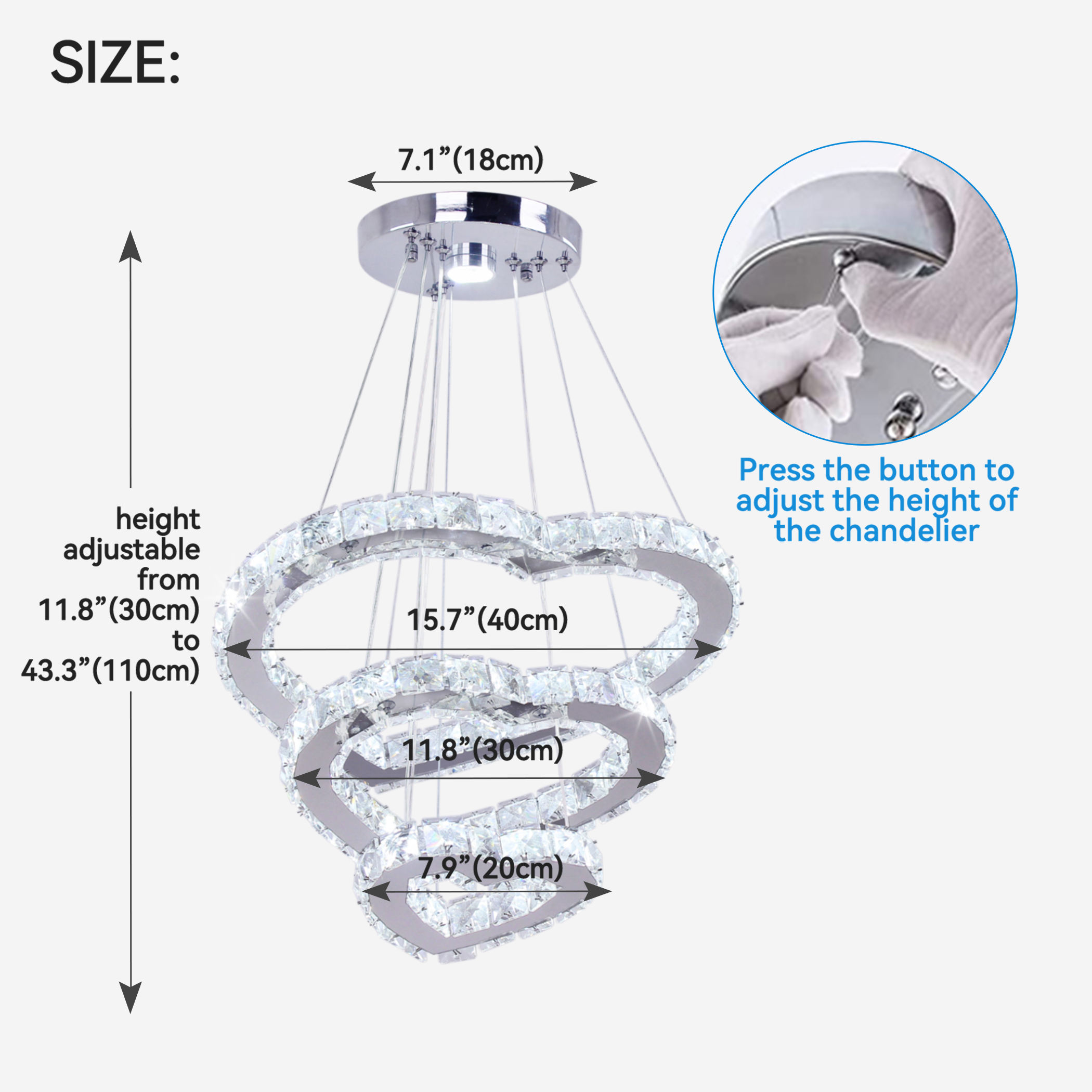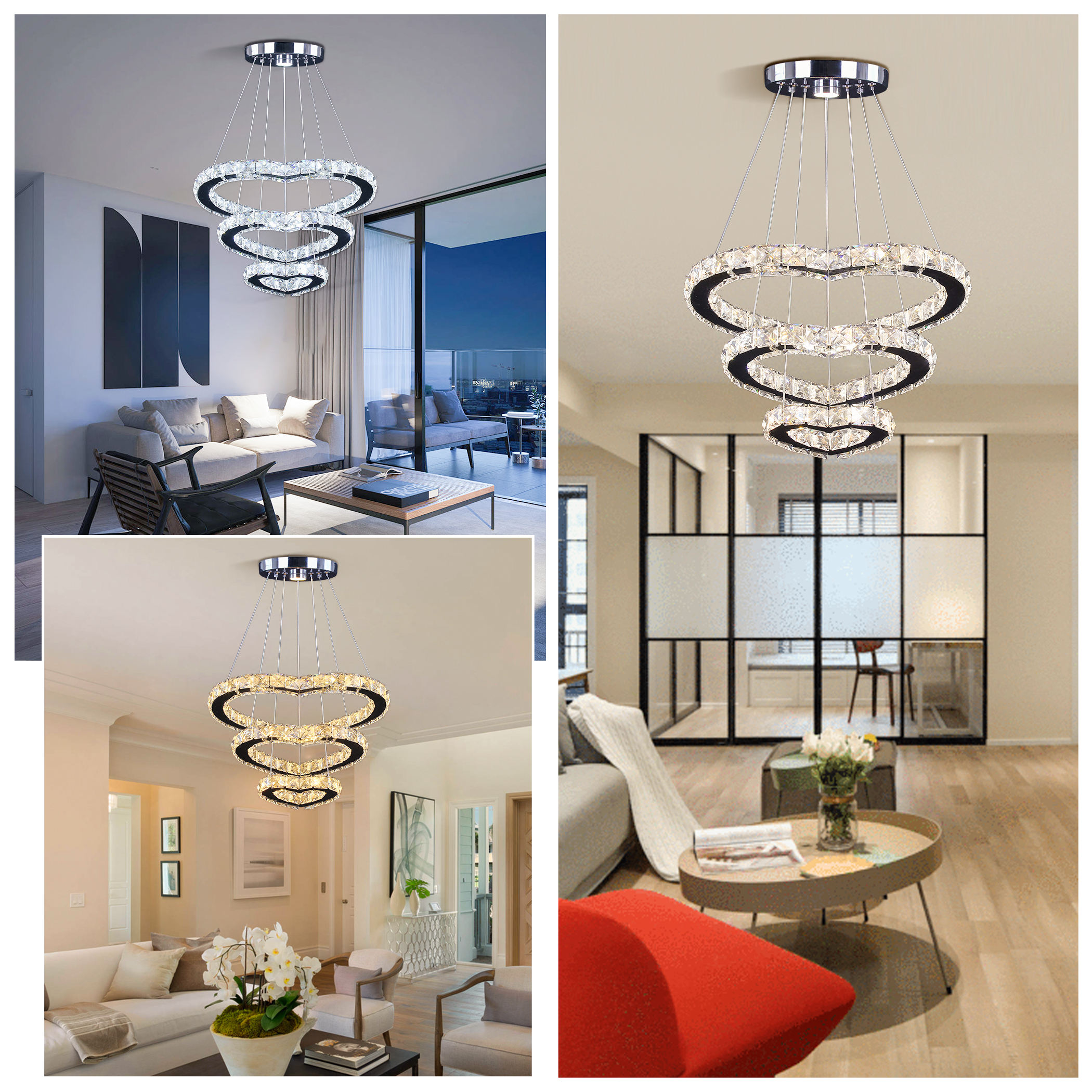 Modern Luxury 3 Hearts Rings Crystal Chandelier