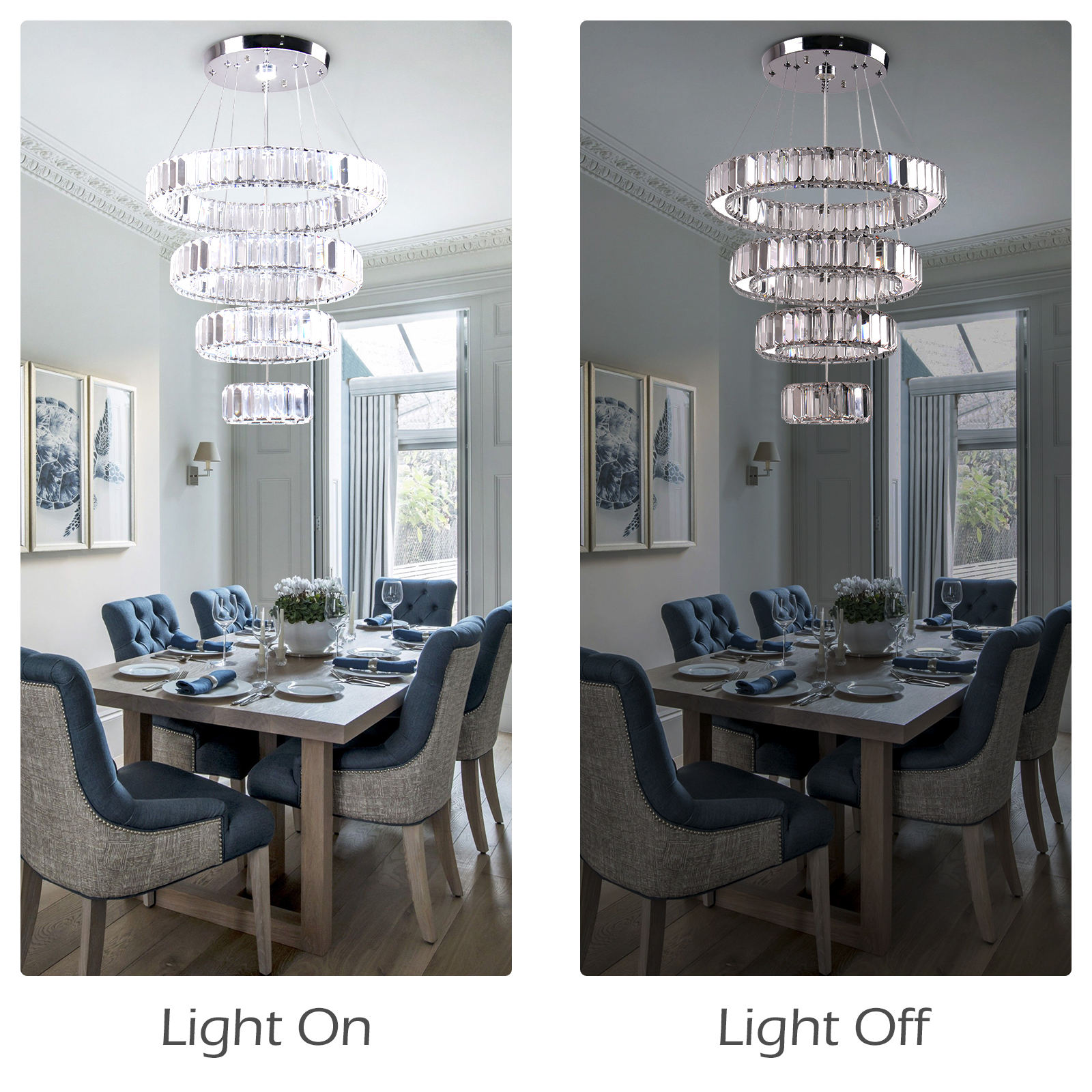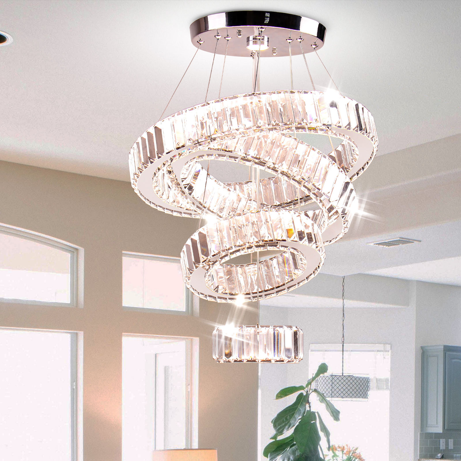 Elevate your space with the Modern Luxury 4-Ring Pendant Chandelier, featuring four intertwined rings that emit a soft, ambient glow.... Read more