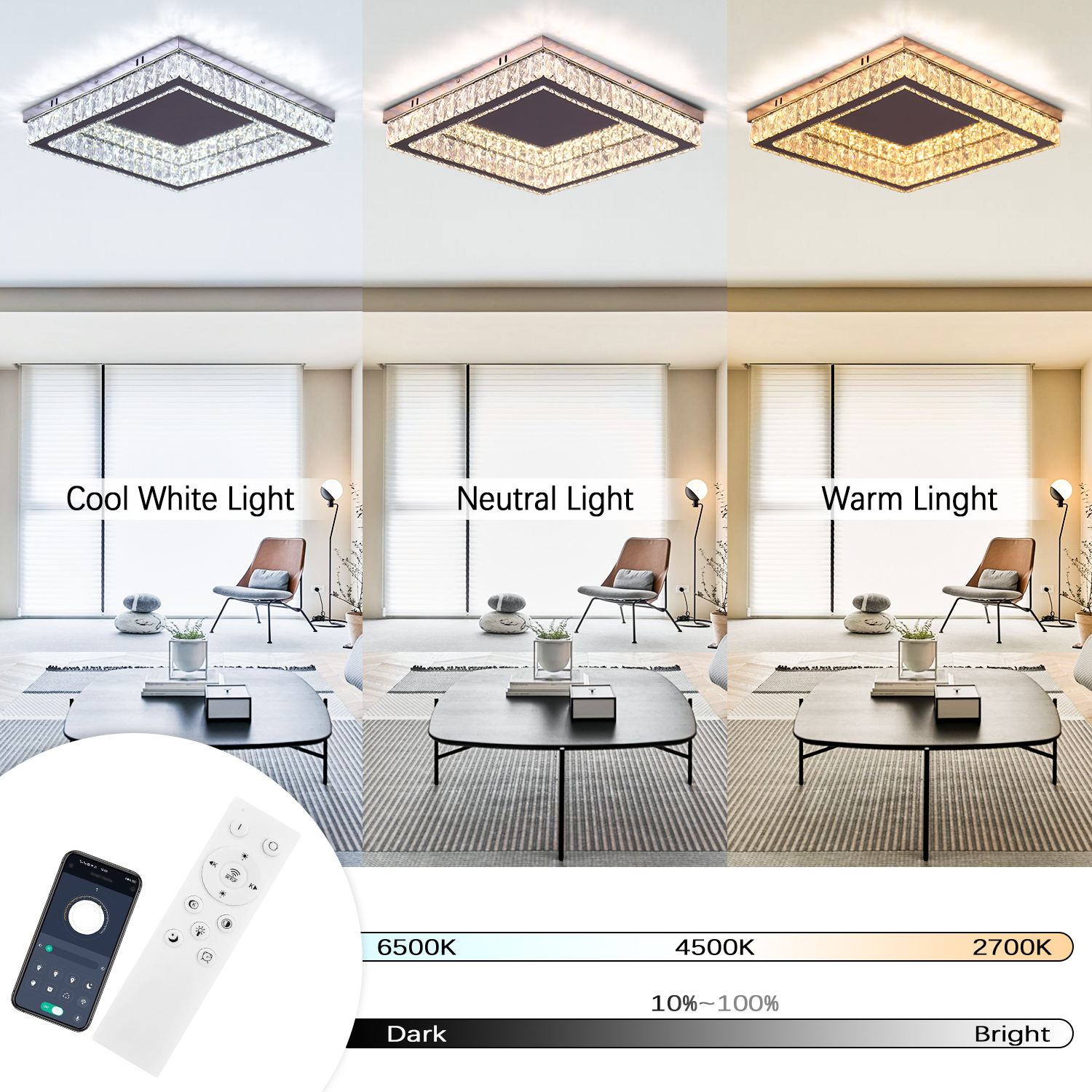 Modern Remote Led K9 Crystal Ceiling Light