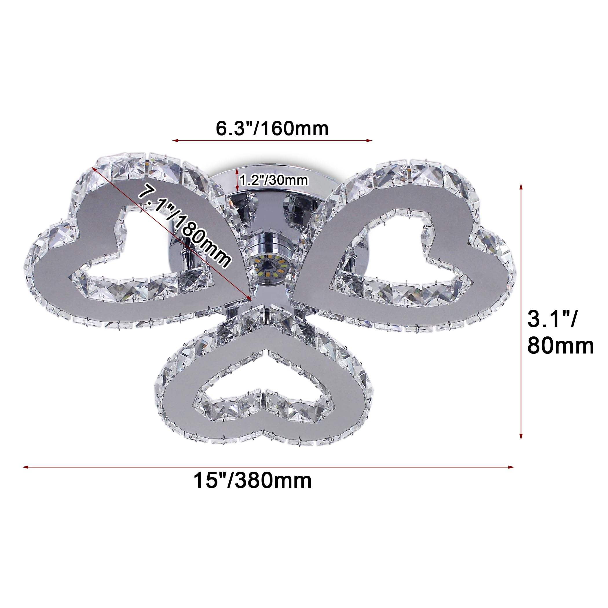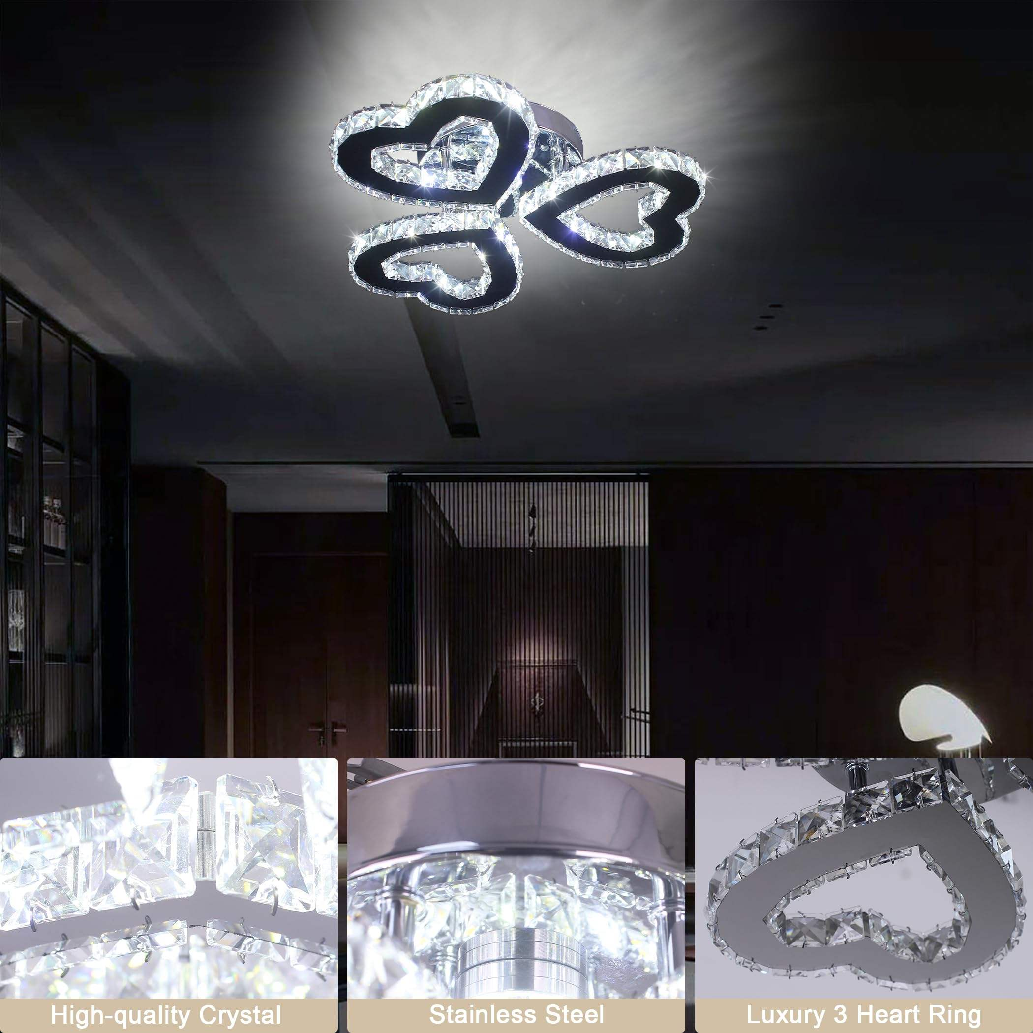 Nordic 3 Hearts Crystal Ceiling Light